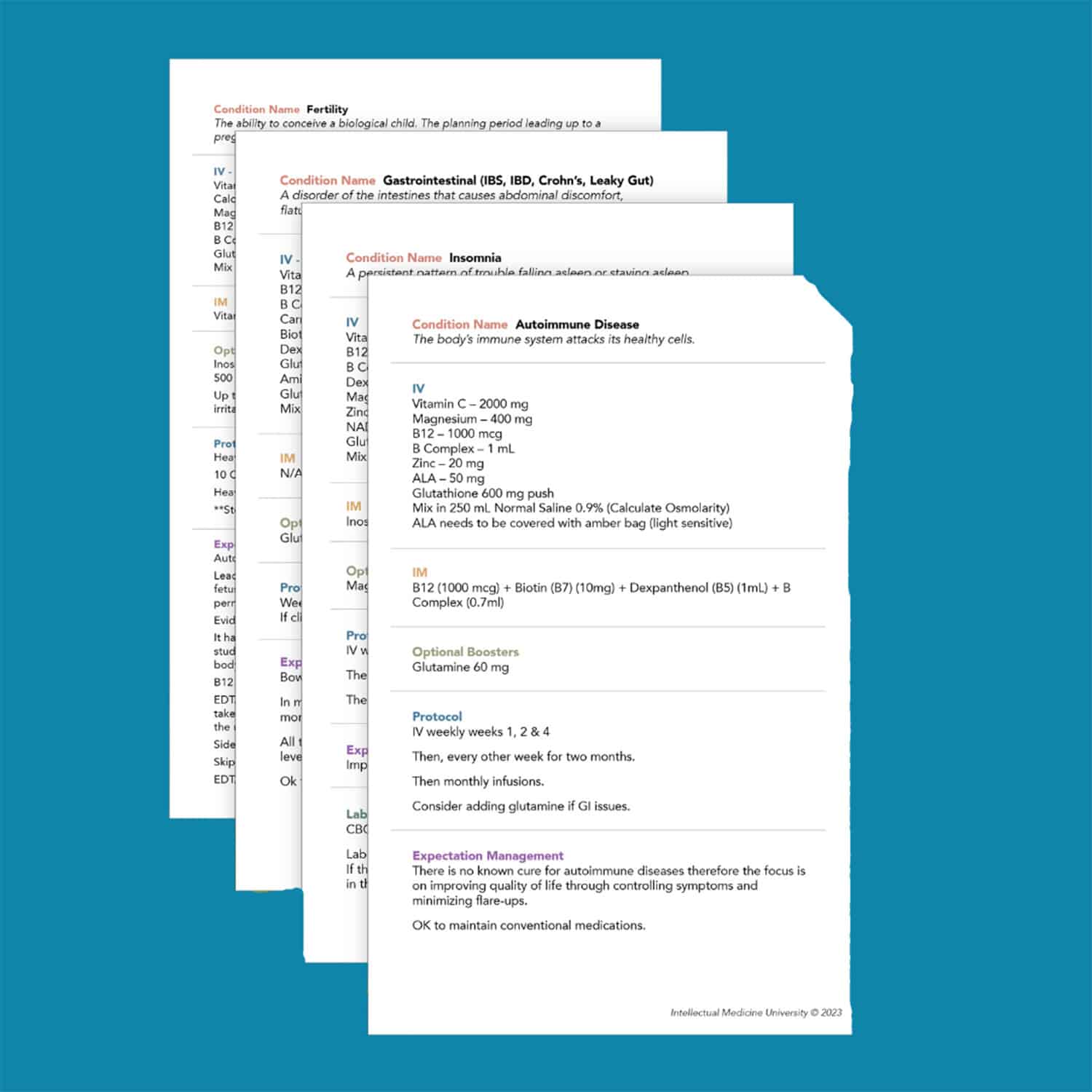 The IV Vitamin Protocol Bundle addresses a wide range of common conditions and symptoms, providing you with practical and specific recipes and protocols. You will receive precise dosages, ingredient combinations, and recommendations for infusion frequency, allowing you to administer treatments with confidence and precision. This level of detail ensures that you can deliver the best possible care to your patients and achieve optimal outcomes.